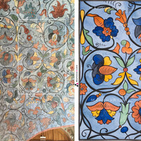 Много цветочных русских орнаментов 17-18 века нам оставили, да все в основном на тканях, в книгах, на керамике. От росписей храмов мало осталось памяти, один Покровский собор да еще несколько чудом сохранившихся храмов бережно хранят память о тех далеких веках.