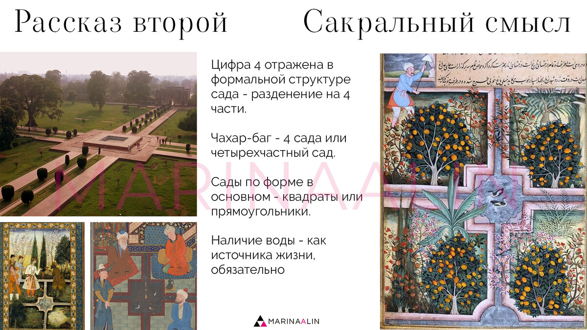 Откуда появилось понятие сада, почему сад изначально был обнесен стеной, что такое «чахар-бах» и как сад связан с зороастризмом, как сад стал прообразом рая, наследие римских садов и персидских садов в исламском мире.